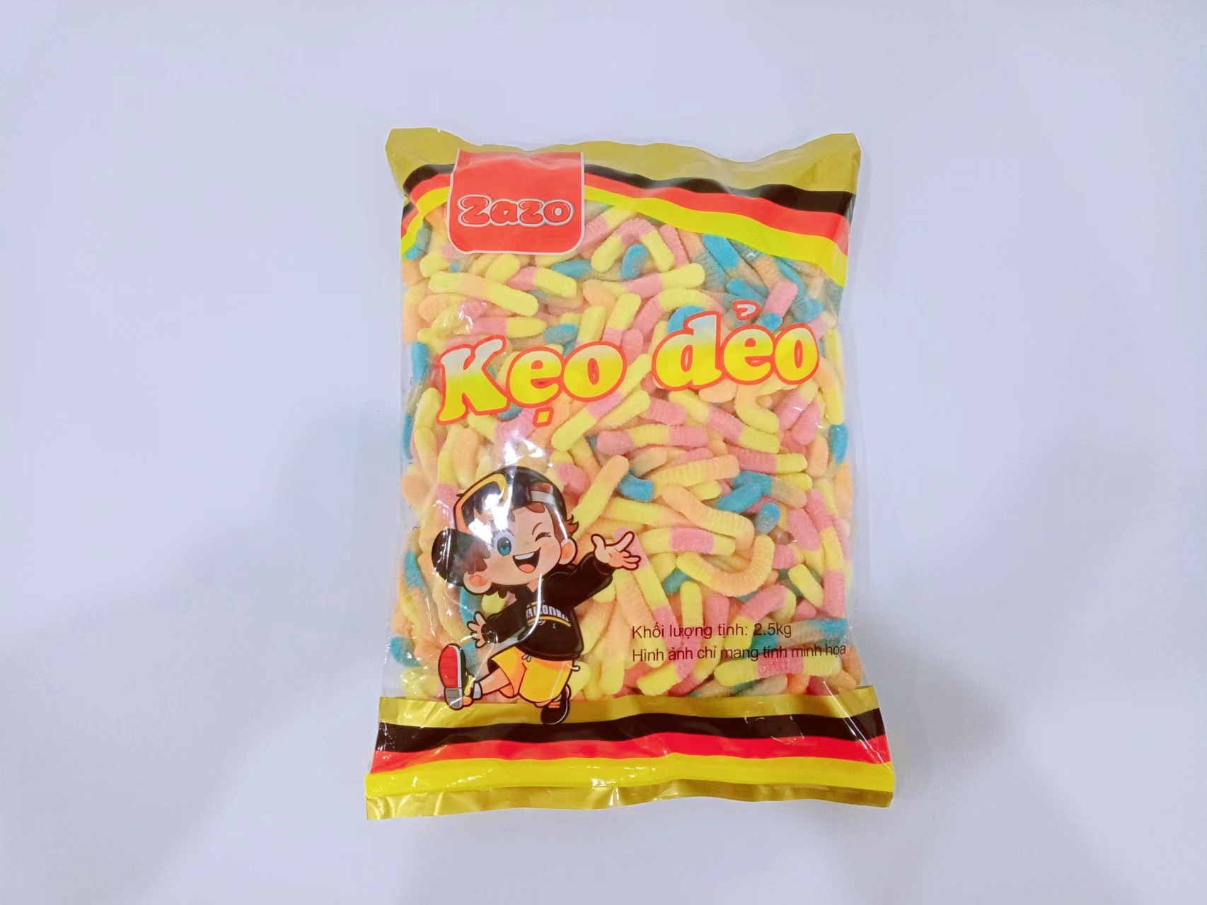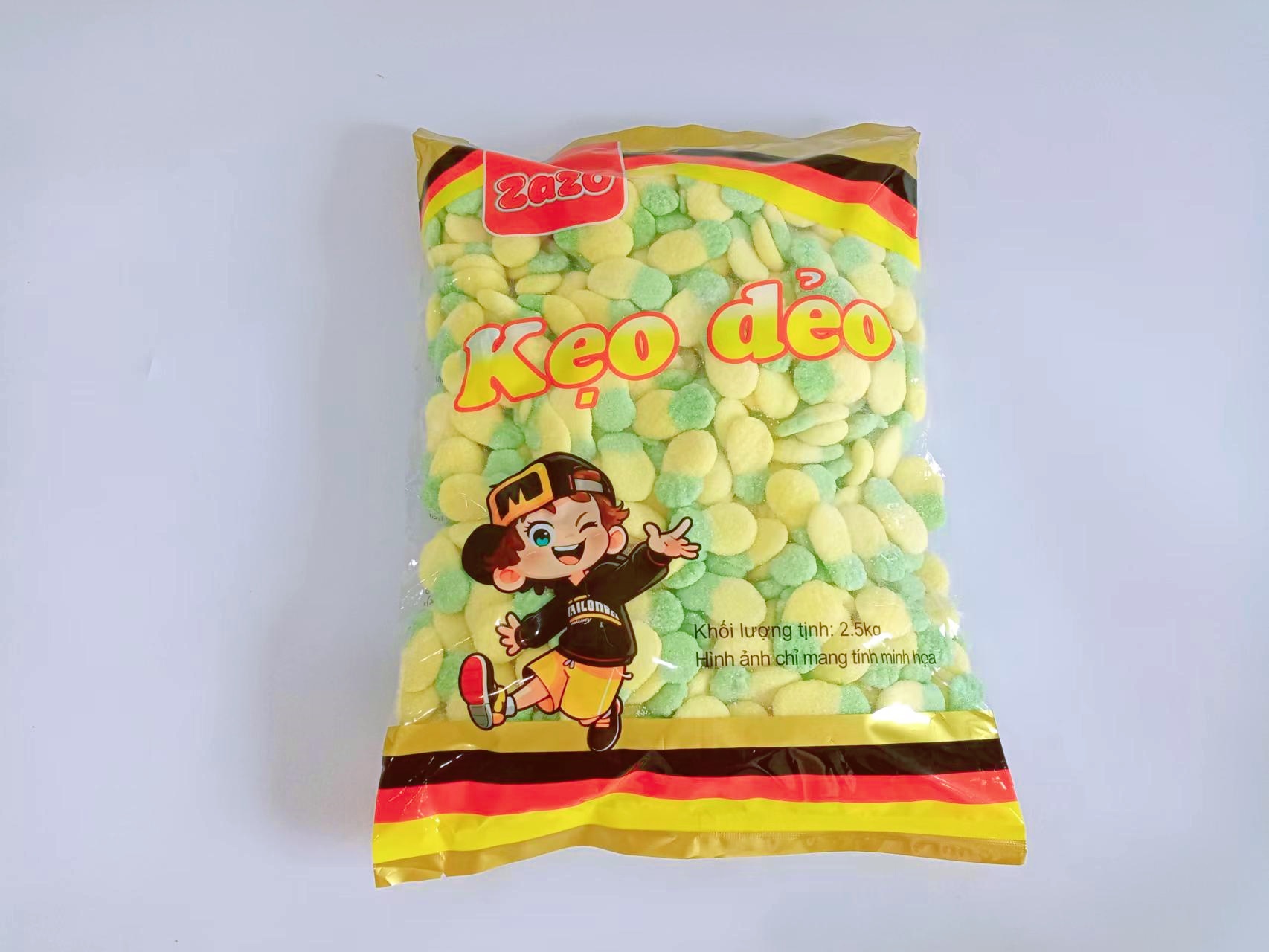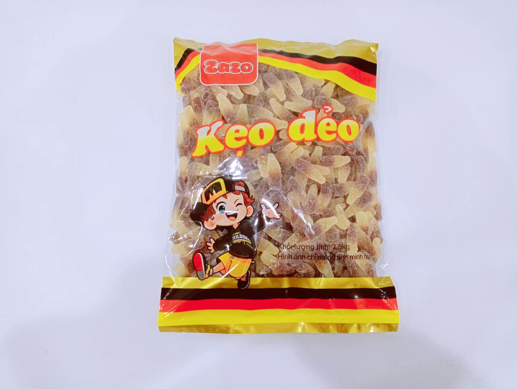 Sản phẩm được đóng gói số lượng lớn (2.5kg x 6 túi), phù hợp cho nhà hàng, quán cà phê, cửa hàng ăn vặt, tiệc buffet kẹo dẻo hoặc bán sỉ phân phối.